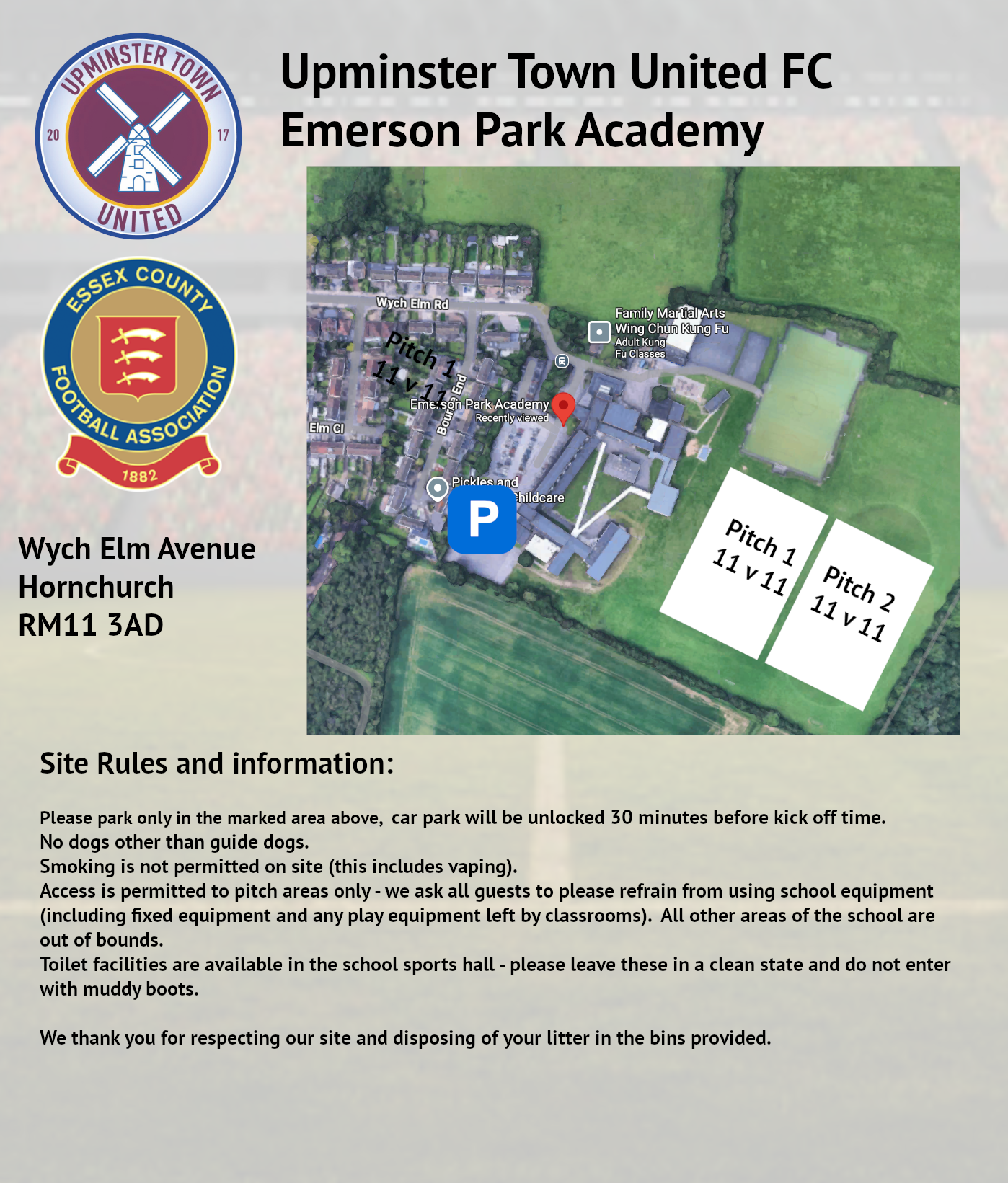 Emerson Park Academy is the base for Upminster Town United U14 Blue, U14 Claret, U15 Eagles, U16 Blue and U16 Stripes.